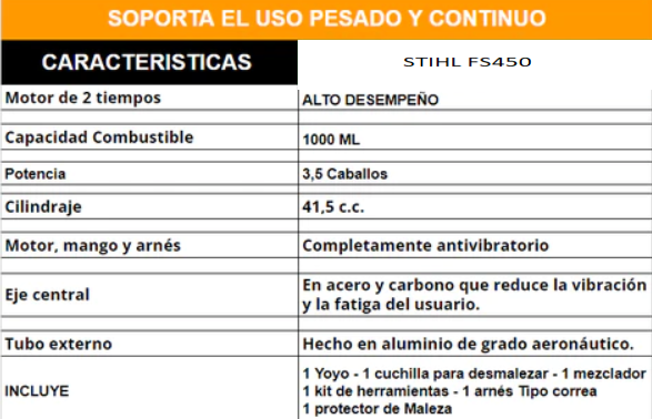 GUADAÑA STIHL FS450 3.5 CABALLOS DE FUERZA